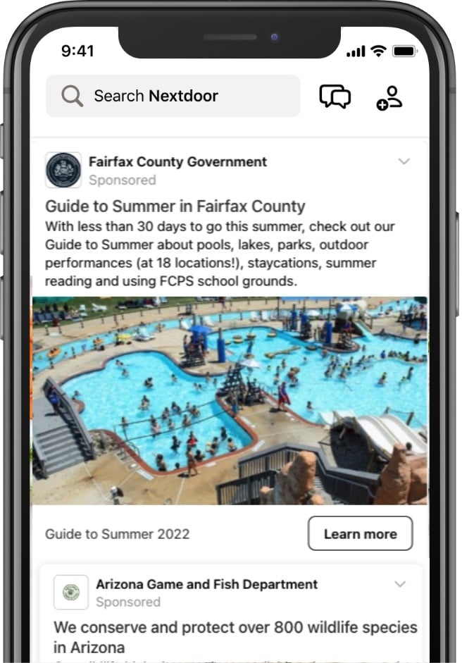 Ads are an excellent option for public agencies to guarantee reach to neighbors, amplify important messaging beyond their jurisdiction, or simply want to engage neighbors without conversation.