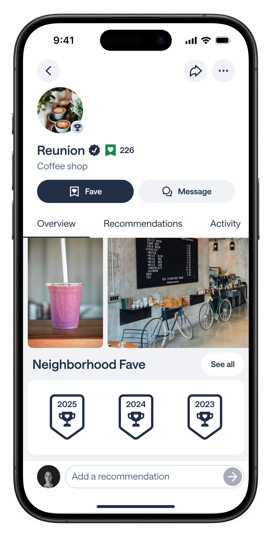 Featured on the Neighborhood Faves page, accessible from every neighbor's app |