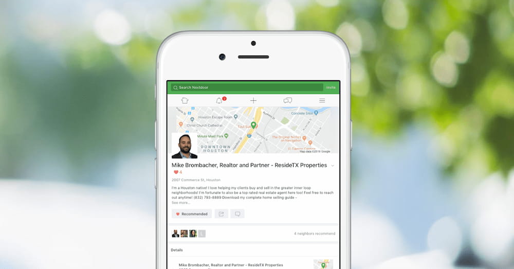 As a Neighborhood Sponsor, your ads appear alongside real estate content on Nextdoor every day. Neighbors will see your name, your photo, and your phone number – and when they visit your Business Page, they can learn even more about you from your greeting message and get in touch with you using one of the contact methods you provide.