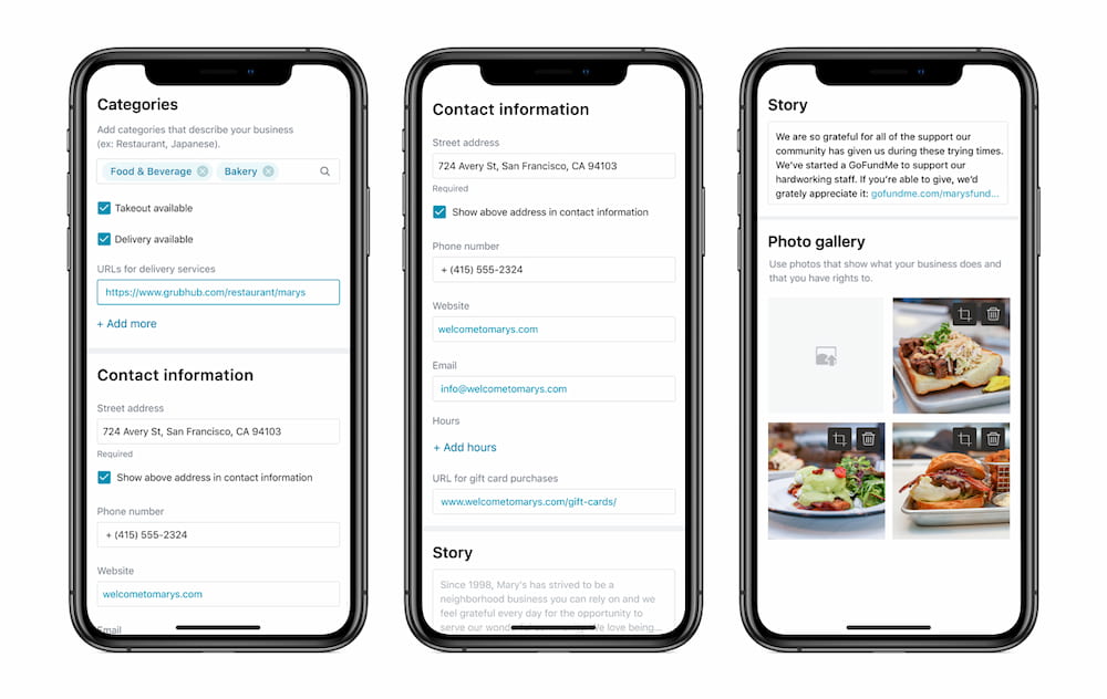 1. Gift Card: In the Business Profile section of your Business Page under Contact Information, you can now add your gift card URL so that neighbors know exactly where to purchase gift cards with you. Enter your URL in the field labeled URL for gift card purchases. Don’t yet have gift cards set up for your business? Get started with Square.